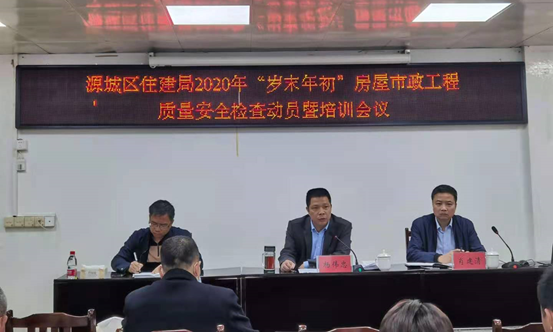 12月14日上午,源城区住建局组织召开“岁末年初”房屋市政工程质量安全检查动员暨培训会议。会议由区住建局肖建清副局长主持,杨伟忠局长到会作动员部署讲话,局有关股室人员以及在建工地项目经理和总监、安全员共63人参加会议。