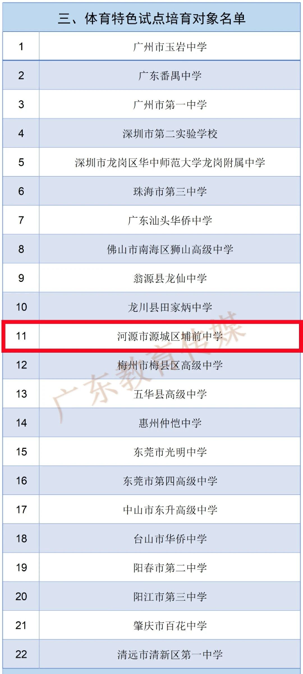 11月14日,源城区埔前中学被正式列为2026年广东省普通高中多样化特色发展改革试点培育对象,标志着我区高中体育特色教育建设迈上新台阶。