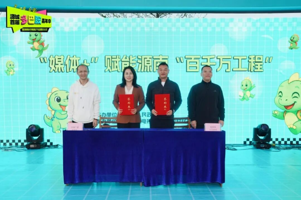 午后的阳光正好,趣味运动会率先点燃活力。入园处领取的集章卡成为大家的“快乐通行证”,超级保龄球的精准投掷、掌上羽毛球的灵巧对打、弹珠夹夹乐的专注比拼、“压力回收站”的尽情释放…… 十余个趣味项目前都排起了长队,亲子搭档默契配合,在“沾沾福气”“大锤小用”等项目中收获满满乐趣。集齐8个印章兑换礼品的设定,让大家热情高涨,现场欢呼声、喝彩声此起彼伏,每个人的脸上都洋溢着纯粹的笑容。 网红打卡区与NPC巡游则成为朋友圈的“流量密码”。酷飒的机车打卡点,让每位游客都能轻松拍出爆款美照;20+专业coser与汉服同袍穿梭在园区各处,时而摆出灵动造型,时而与游客亲切互动,二次元与传统文化的碰撞,让现场氛围感拉满。 此外,机器人与机械狗的多机型协作表演更是吸睛无数,科技感十足的互动体验,为这场狂欢增添了别样精彩。 美食集市自下午3点开摊后便香气四溢,成为吃货们的天堂。KFC、奈雪的茶、书亦烧仙草等热门品牌与艾粄、炸油果、老鼠粉、窑鸡等客家风味美食同台竞技,烟火气与新潮味完美融合。 傍晚时分,“有滋有味 快乐加倍”烤全羊盛宴准时开席,金黄酥脆的烤全羊滋滋冒油,香气扑鼻,大家围坐一堂,大口吃肉、畅快聊天,味蕾与心情一同沉浸在狂欢之中,尽享舌尖上的幸福滋味。 当天下午5点,圩镇客厅迎客仪式如期举行,成为整场活动的点睛之笔。现场举行了源南镇政府与河源广播电视台“媒体+”赋能源南“百千万工程”战略合作签约仪式。这是落实广东省“媒体+”赋能"百千万工程"三年行动方案的生动实践。未来,双方将在宣传推广、产业赋能、智库支持、品牌塑造等方面开展深度合作。 文旅融合,光影为媒!为丰富源南圩镇客厅的文化内涵,拓展文旅发展新赛道,现场还举行了“河源广播电视台微短剧拍摄取景地”授牌仪式。 夜幕降临,多巴胺音乐节接过欢乐的接力棒。本土乐队轮番登台,流行、摇滚、民谣等多元风格的旋律在夜色中流淌,大家围坐在一起,跟着节奏轻轻哼唱,陌生的朋友因音乐结缘,即兴合唱、温馨互动,让温暖与快乐在空气中传递。这场听觉盛宴持续至晚间9点,用最纯粹的旋律为一天的狂欢画上圆满句号。 而这亮眼场景的背后,正是“百千万工程”为源南镇带来的深刻变革。自“百千万工程”启动以来,源南镇将其作为头号工程聚力推进,紧紧围绕“水韵龙乡、智造源南”发展定位,在产业建设、典型培育、城乡风貌等重点领域取得突破。全镇规上工业总产值实现185.05亿元,并助力全市包装饮用水制造业营收跃居全国首位。源南镇入选第三批典型镇,源南镇白田村、双下村等先后入选省级典型村,城乡面貌实现美丽蝶变,“百千万工程”取得坚实进展。如今的源南,产业兴旺、村容整洁、活力迸发,这场迎客仪式不仅是圩镇客厅的全新亮相,更是源南镇向市民游客交出的“百千万工程”建设亮眼答卷。
