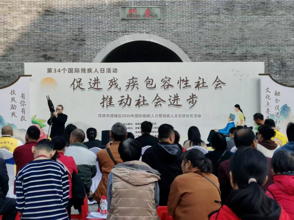 为庆祝第34个国际残疾人日,弘扬“平等、包容、互助”精神,12月3日,源城区残联在上城社区鳄湖公园东门举办2025年国际残疾人日暨文化进社区活动。