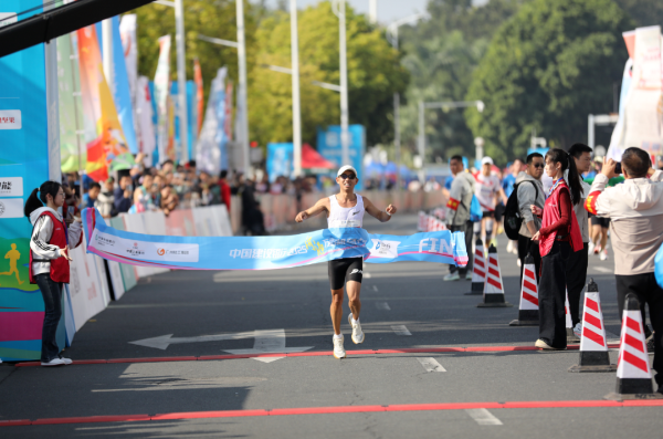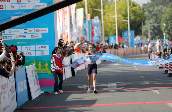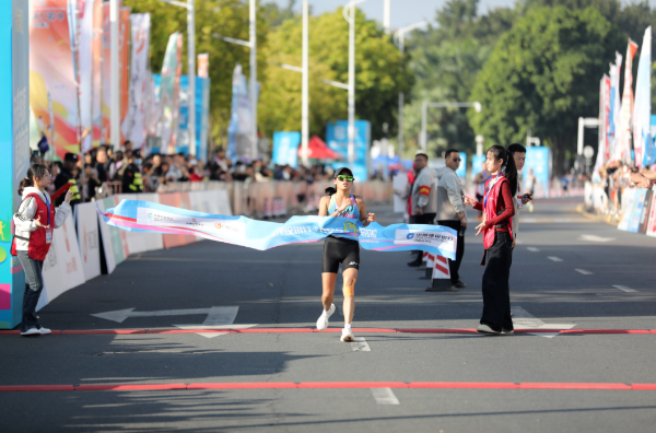 来自贵州六盘水的陆银秀获得半程马拉松女子组冠军。