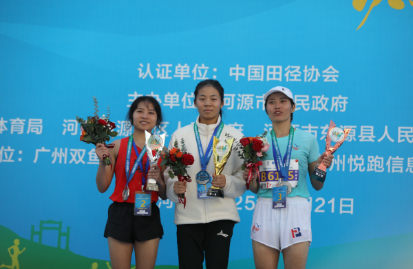 来自湖北黄石的喻俊莉以3小时00分21秒的成绩夺得全马女子组冠军,来自福建厦门的黄波波以3小时00分49秒获得全马女子组亚军,来自广东深圳的段志芬以3小时01分59秒获得季军。