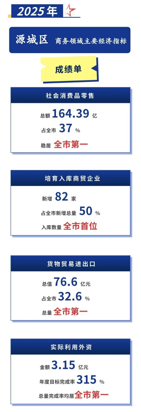 2025年,源城区锚定“扩内需、稳外贸、促外资、育主体”核心目标,精准施策、靶向发力,推动全区商务领域实现跨越式发展,社消零、商贸企业培育入库、外贸进出口、实际利用外资量质齐升,为源城经济高质量发展注入强劲动能。