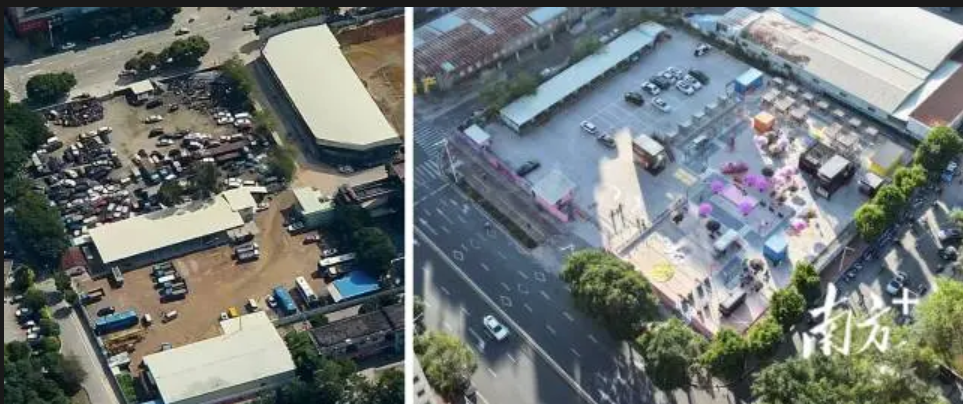 源西街道站前路待建地项目整治前后。 受访者供图
