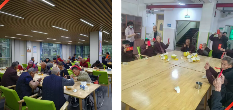 除夕当天,食堂精心准备了热气腾腾的团圆饭,工作人员与老人们围坐一桌,一同举杯祝福、同吃年夜饭,为老人夹菜、添汤。对院里的老人们来说,这顿年夜饭,吃的是年味,品的是牵挂,感受到的是胜似家人的陪伴与温暖。一位老人动容地说:“看着身边的孩子们忙前忙后,就像看到自己的亲人一样,这份团圆,格外珍贵。”