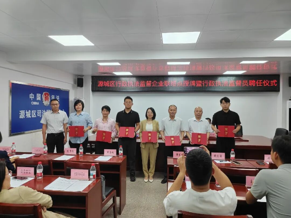 为纵深推进法治政府建设,织密社会监督网络,持续优化法治化营商环境,近日,源城区司法局推出行政执法监督新举措,设立行政执法监督企业联络点、选聘各界行政执法监督员,并同步上线上岗,以“前哨点位+专职监督”模式,为企业发展筑牢法治屏障。