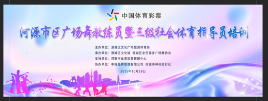 为进一步加强河源市区广场舞教练员队伍建设,推动我区的广场舞普及和发展,提高技术水平,丰富我区群众文化生活,倡导健康文明的生活方式,2025年10月18日由源城区文化广电旅游体育局主办,源城区文化馆和源城区全民健身广场舞协会承办的2025年河源市区广场舞教练员暨三级社会体育指导员培训班在源城区文体中心成功举办。
