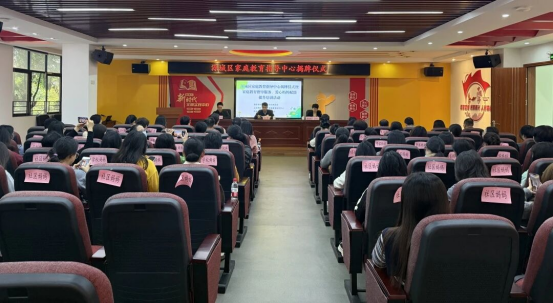 活动现场,区委副书记张静,区妇联党组书记、主席黄丽静,区文广旅体局党组书记、局长巫仕宇和区妇联党组成员、副主席邱翠卿共同为区家庭教育指导中心揭牌